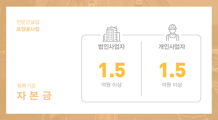 포장공사업은 1.5억 이상의 자본금이 준비되어 있어야 합니다.