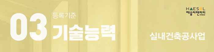 실내건축면허는 총 2인 이상의 기술자격취득자가 준비되어야 합니다.