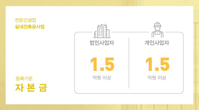 실내건축면허는 1.5억 이상의 자본금이 준비되어 있어야 합니다.