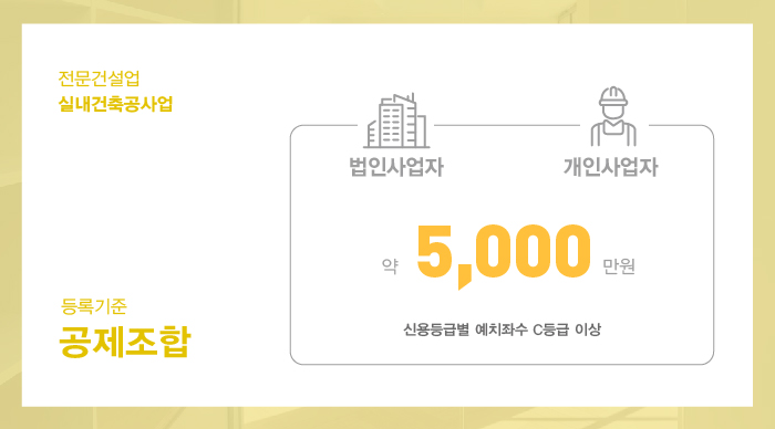 실내건축면허는 약 5,000만원의 출자금을 전문건설공제조합에 예치하셔야 합니다.