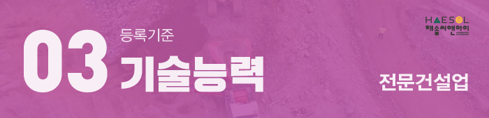 전문건설업면허는 업종에 맞는 기술자격취득자를 준비하셔야 합니다.