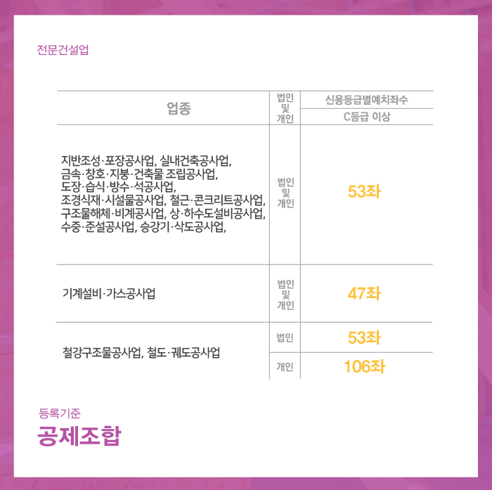 전문건설업면허는 업종 및 법인, 개인에 맞는 출자금을 전문건설공제조합에 예치해야 합니다.