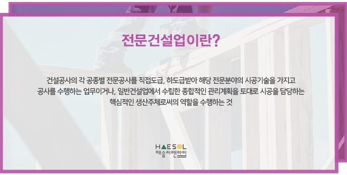가지고 공사를 수행하는 업무이거나, 일반건설업에서 수립한 종합적인 관리계획을 토대로 시공을 담당하는 핵심적인