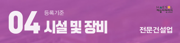 전문건설업면허의 경우 위 표에 해당하는 업종은 장비 또한 준비되어야 합니다.