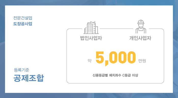 도장공사업은 약 5,000만원의 출자금을 전문건설공제조합에 예치하셔야 합니다.