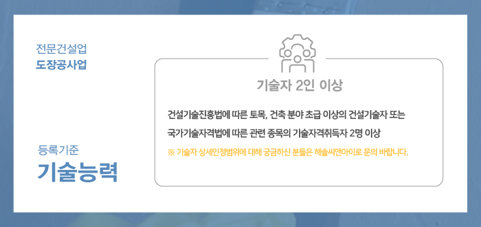 도장공사업은 총 2인 이상의 기술자격취득자를 준비하셔야 합니다.
