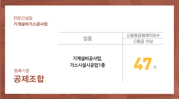 기계설비가스공사업은 47좌의 출자금을 기계설비건설공제조합에 예치하셔야 합니다.