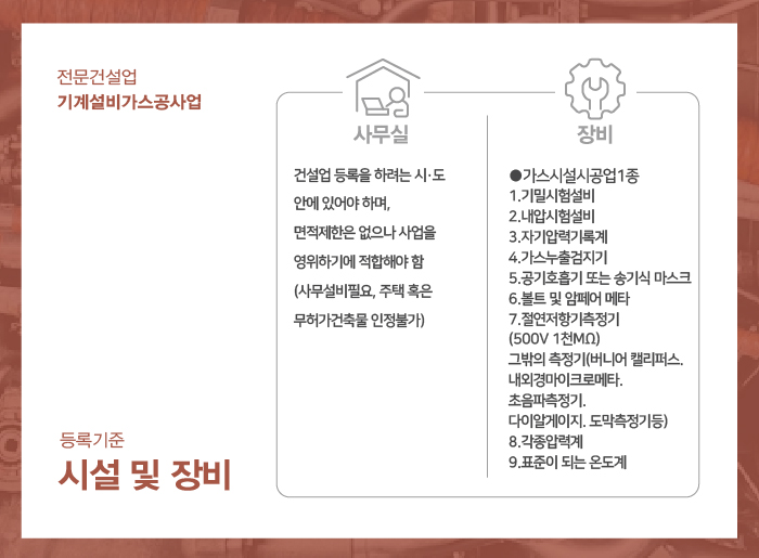 기계설비가스공사업은 사무실 또한 기본으로 준비되어야 합니다.