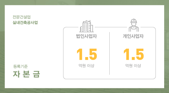 실내건축면허는 1.5억 이상의 자본금이 준비되어 있어야 합니다.