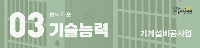 기계설비공사업은 총 2인 이상의 기술자격취득자를 준비하셔야 합니다.