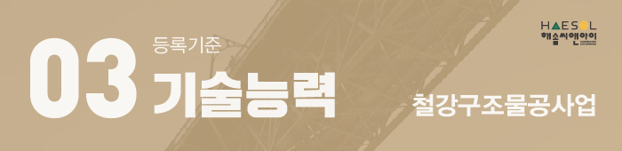 철강구조물공사업은 총 4인 이상의 기술자격취득자가 준비되어 있어야 합니다.