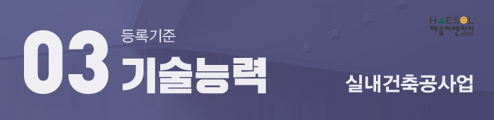 실내건축공사업은 총 2인 이상의 기술자격취득자가 준비되어 있어야 합니다.