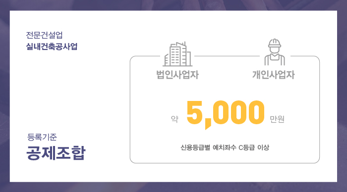 실내건축공사업은 약 5,000만원의 출자금을 전문건설공제조합에 예치하셔야 합니다.