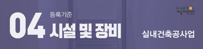 실내건축공사업은 장비 기준은 없으나 사무실이 기본으로 준비되어 있어야 합니다.